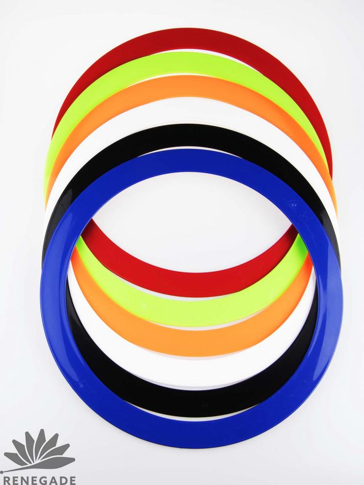 The 40 cm (16 inch) diameter Mr Babache Flat Ring is a solid plastic ring (not hollow) and is a good large-sized ring for solo numbers juggling with 5 or more rings. Juggling the 40 cm ring is more challenging than the 32 cm ring, but these larger rings are much more visible during performances.