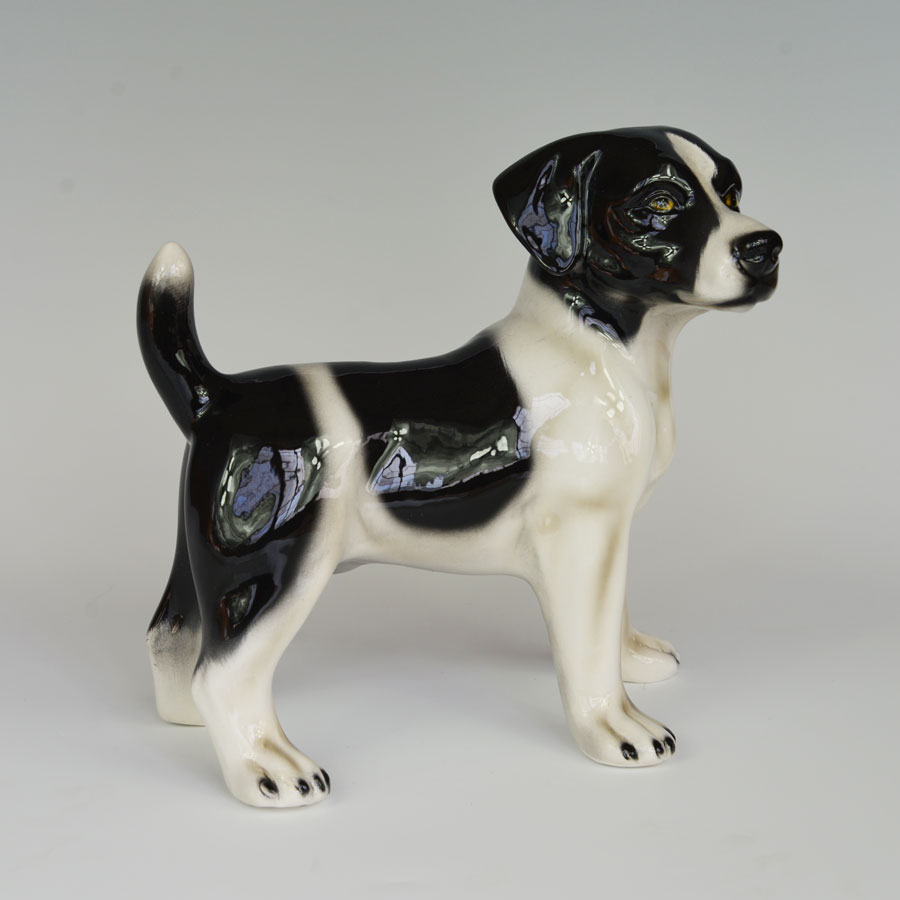 Celebrate your alert and quick-witted Jack Russell with the 11-inch Ceramiche Boxer Italy Jack Russell Terrier Statue. This small ceramic Jack Russell is perfect for placing on the mantle or tabletop. Its rich, detailed finish highlights the Jack Russell's loving, friendly eyes and black-marked coat. Ceramiche Boxer Italy ceramic dogs are made by master Italian potters and then painted by hand, so Christmas Night Inc. recommends them only for indoor use.