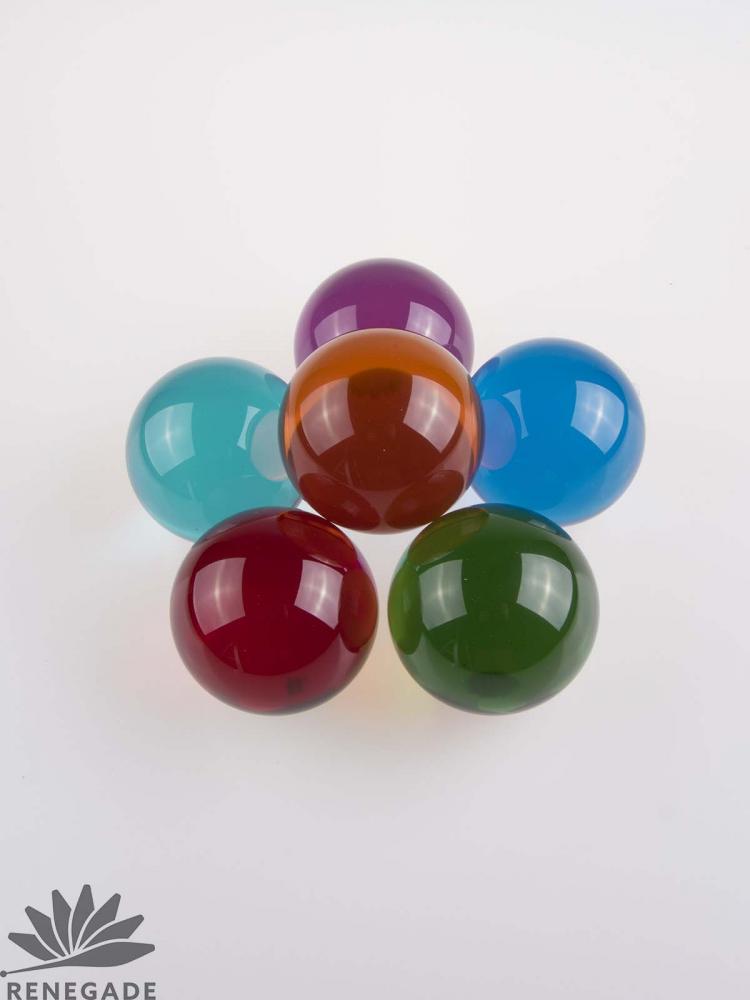 All of the colored balls are made of pure acrylic plastic. They are machined and polished free of internal distortions or scratches. Renegade acrylic balls are tough, chip resistant and shatterproof.