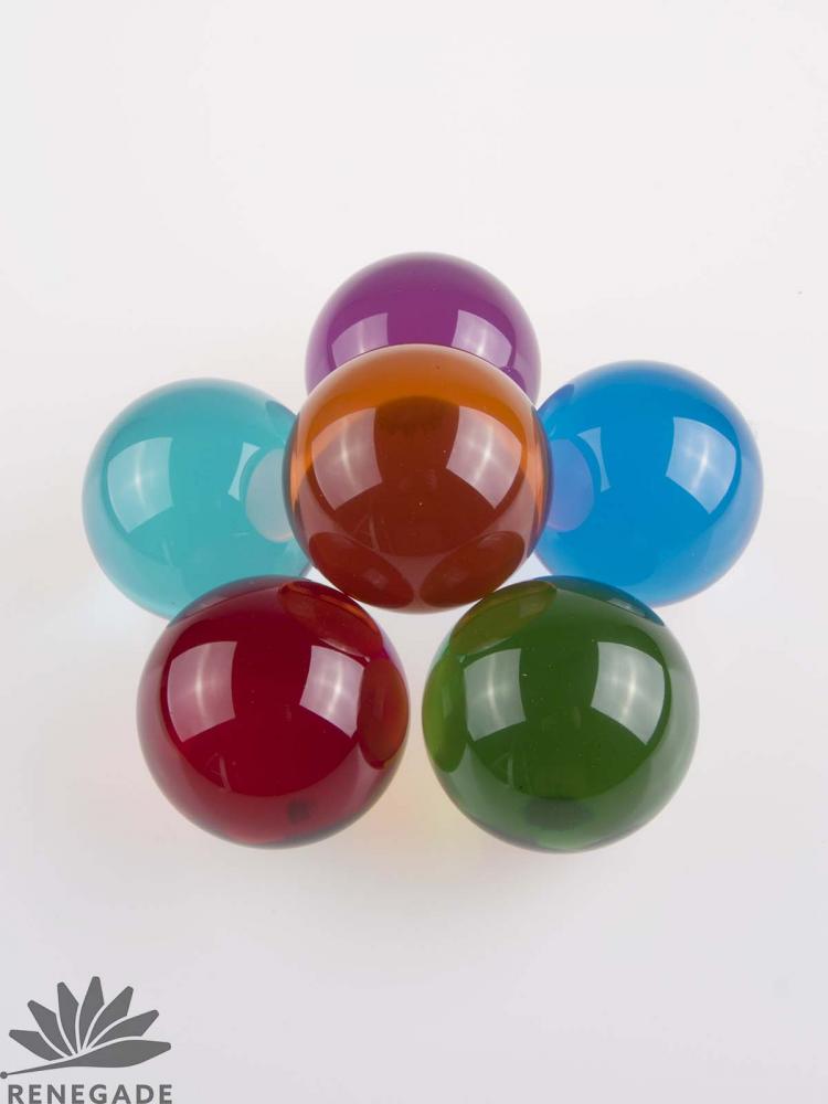 All of the colored balls are made of pure acrylic plastic. They are machined and polished free of internal distortions or scratches. Renegade acrylic balls are tough, chip resistant and shatterproof.