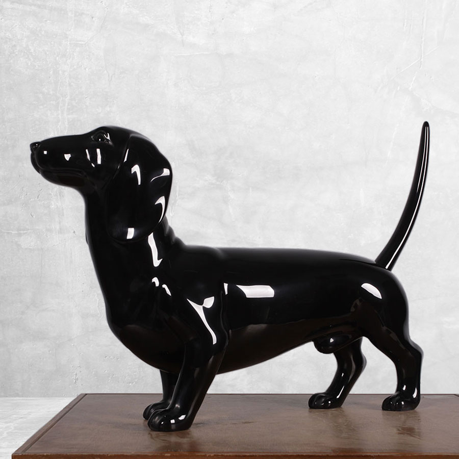For the beauty of a ceramic look statue without the heavy weight, choose this adorable Dachshund statue made of fiberglass with a black gelcoat finish. The material is durable yet lightweight for easy positioning. The glossy gelcoat finish makes this Dachshund statue an elegant addition to your interior decor. A unique dog statue for a special place in your home.