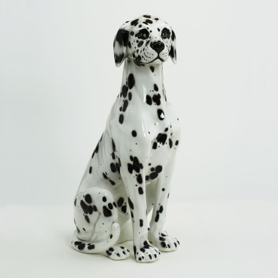 The dignified 30-inch tall Ceramiche Boxer Italy Dalmatian Statue is so realistic and remarkable that it makes the perfect gift for any devoted Dalmatian owner, breeder or fan. It is hand-painted in Italy to ensure that the Dals distinctive spots are absolutely perfect and has a striking, high-gloss finish to draw out the meticulous details in the Dalmatian's spotted coat and human-like eyes. This totting dog has a long history of running along side coaches of nobles and accompanying fire trucks. Christmasnightinc.com offers several Dalmatian statues in addition to this style..