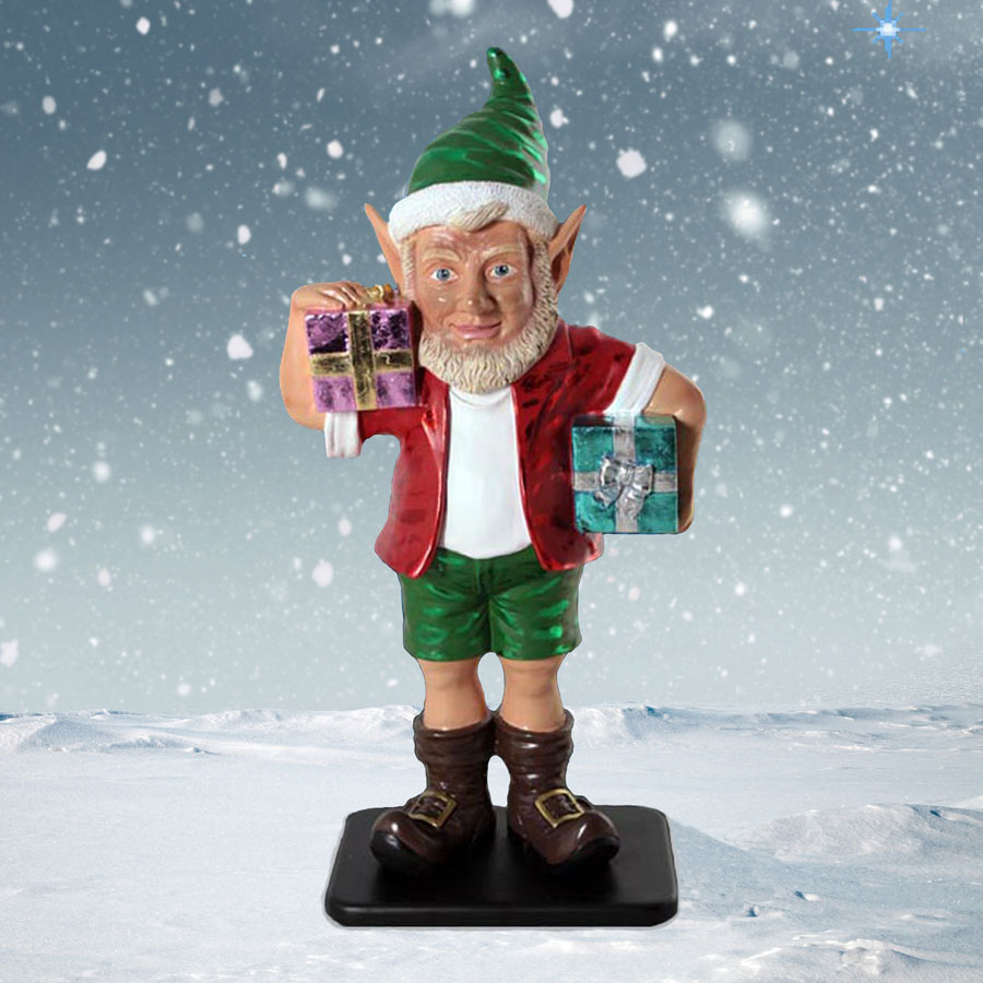 This 36-inch high Santa's Elf decoration by Heinimex helps you bring the fun of the season to your holiday presentation. The elf is depicted carrying two presents and features rich color, expressive facial detail and intricate, painted accents. It is crafted from durable, chip-resistant fiberglass that allows it to stand up to the elements when placed outdoors. It is part of the Heinimex Christmas Collection.