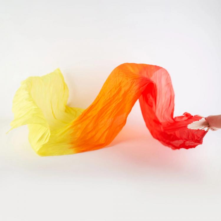A nice looking prop, with a total lenght of 5 feet and 2 feet wide. The fans only open in one direction, it opens to the right. A nice prop where fire is not allowed. This is also a good starting props for children as the fan poi can be used to make simple good looking routines