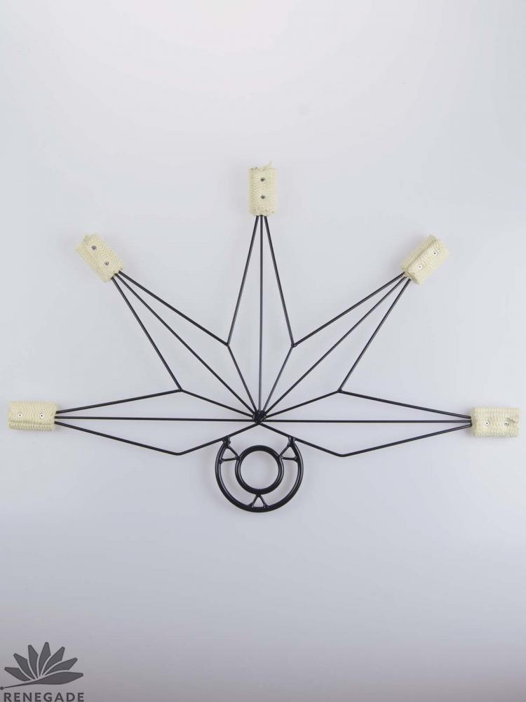 Star fire fan with riveted wicks ( 12 inch x 2 inch wicks). Burn time 4-5 min. Manipulation ring has a 4 inch out side diameter. Powder coated. With one interal center ring for spinning. This fan is one or our large models, 23.5 inch wide by 16 inchs high.