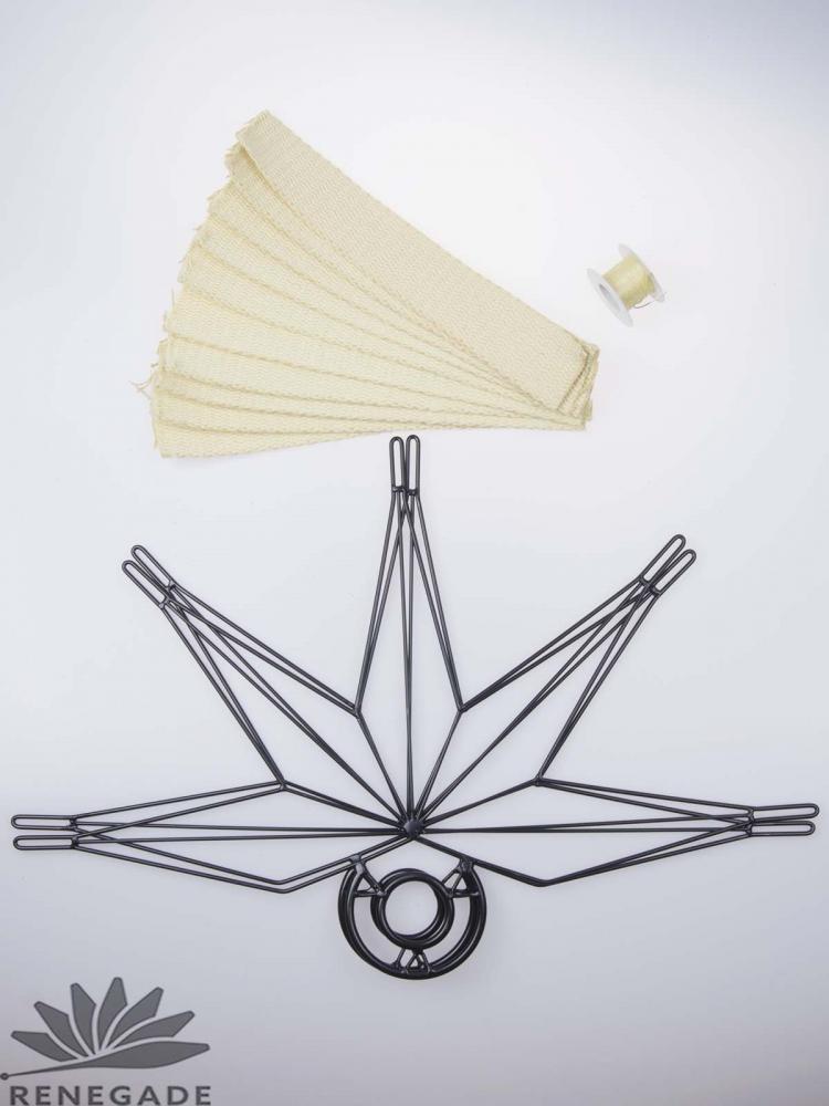 Save money and have fun wicking your own set of fans. The kit includes two fan frames, ten pre-cut Kevlar wicks, Kevlar thread and a curved needle. It is easy to wick the fans yourself. Though it takes sometime to do it. Simple insert the wicks through the loop and the end of the fan. Wrap the wick tightly around the loop, fold over the edge and sew. Do not do a running stitch. It is better to do several stitches, tie if off and repeat. Then if the thread did burn through, the seam would not unravel. One other sewing tip, tape the wick on the loop wiht elcetric tape, so it stays in place and tight. While sewing move the tape as you advacne your seam.