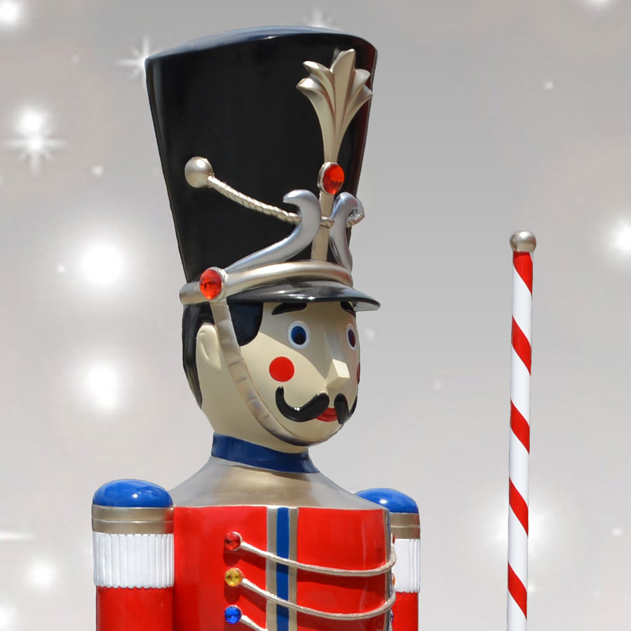 Every large display needs a good guard, and by adding this 10-foot giant toy soldier with baton, your Christmas décor will become larger than life. Christmas Night toy soldier statues have a detailed design right down to the gold-gilded buttons and tasseled boots. This giant Christmas soldier has a red and white striped baton in his left hand for placement on the matching side as you face an entryway. The fiberglass construction means he can lead other figurines on an imaginary parade for years to come.