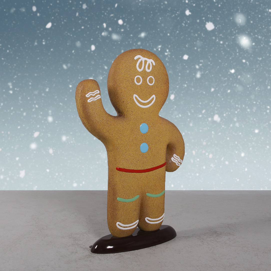 Gingerbread for a sweet Christmas. This Gingerbread Boy will delight the kids this Christmas. Featuring incredibly realistic gingerbread look paint over a durable, chip-resistant fiberglass base, this gingerbread character is a must for a sweet outdoor Christmas display at your home or business. This gingerbread figure stands on a sturdy base with security plates. See below for additional Gingerbread figures.