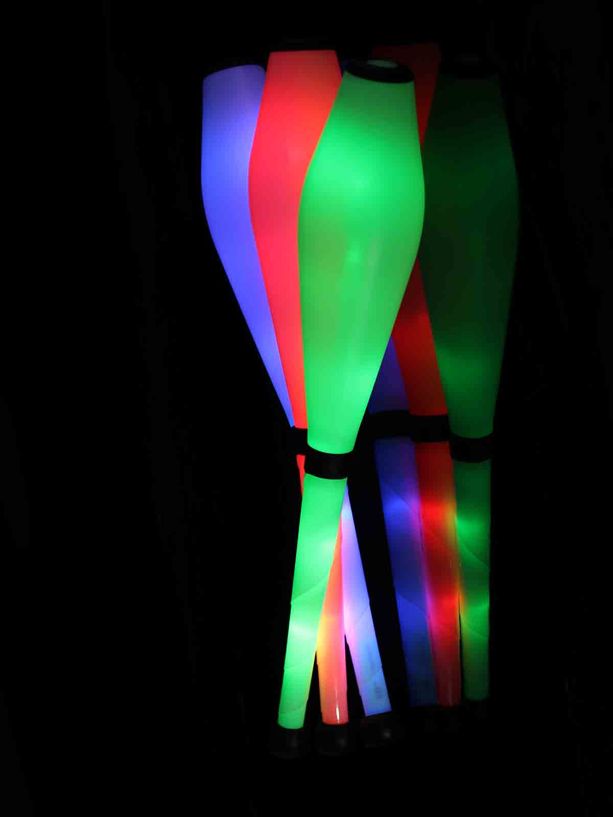 The Prophecy RGB-IR is a professional LED juggling club with an electronic system that produces different colors and pre-programmed strobe effects. The club colors and strobe effects are changed by using a remote control via infra-red (IR) signal, just like a television remote control.