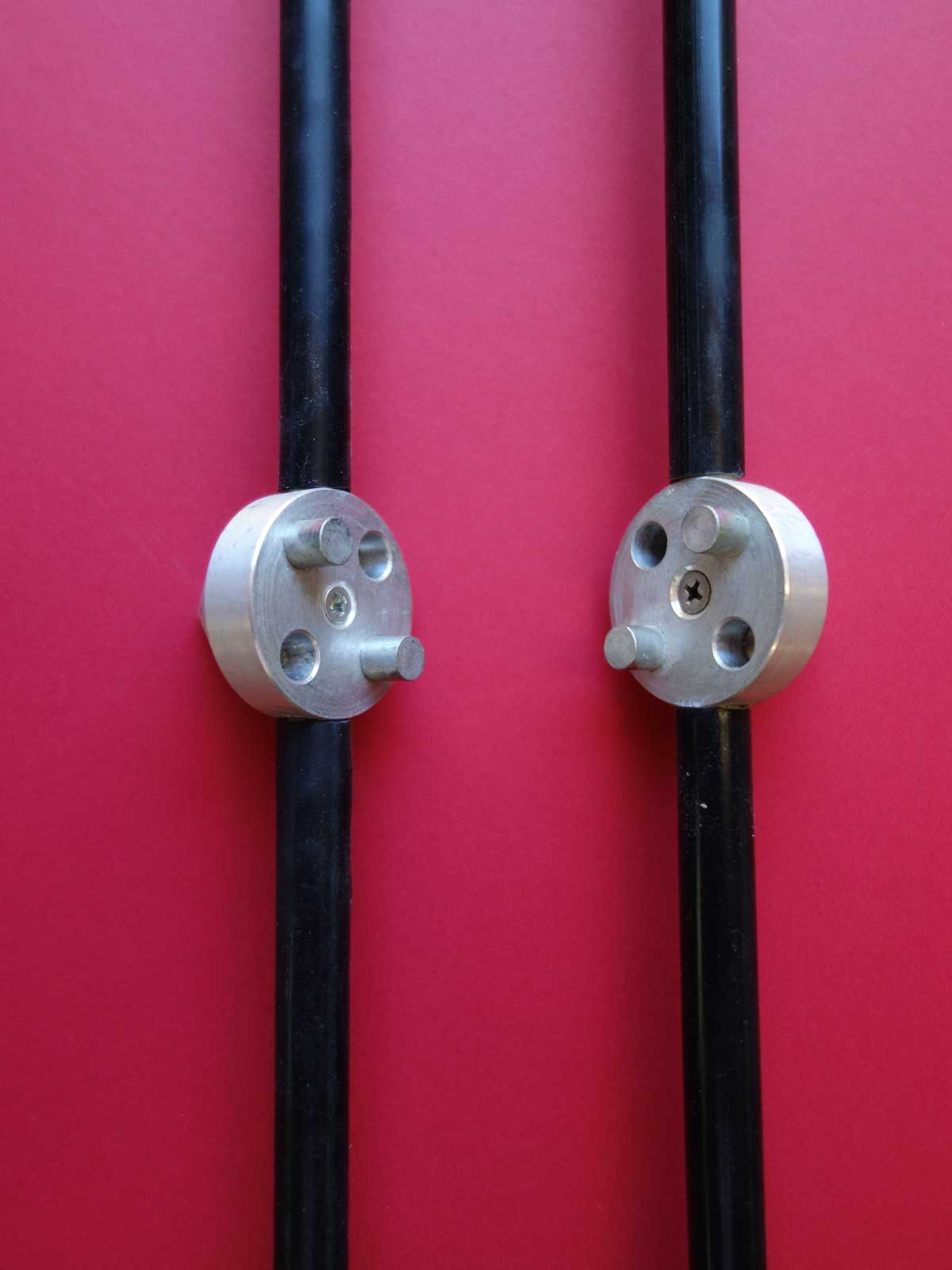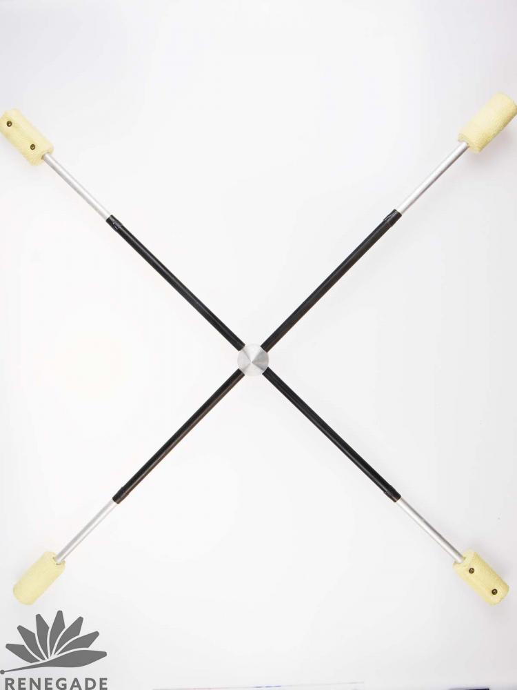 The Magnetic Pendulum has an amazing effect, almost magical,something you will mesmerize your audience with! It consists of two 150cm long sticks (long) or two 90cm sticks (short), with a special connection part in the middle. The long has 100mm wide kevlar heads at the ends and the short has 70mm. It is covered with a silicone grip. The weight of the short is 712 grams and the long is 1kg.The player can attach the two sticks in a cross position with an easy movement in the middle of the stage. The magnets keep the half’s join together, but you can separate them with a strong perpendicular movement.