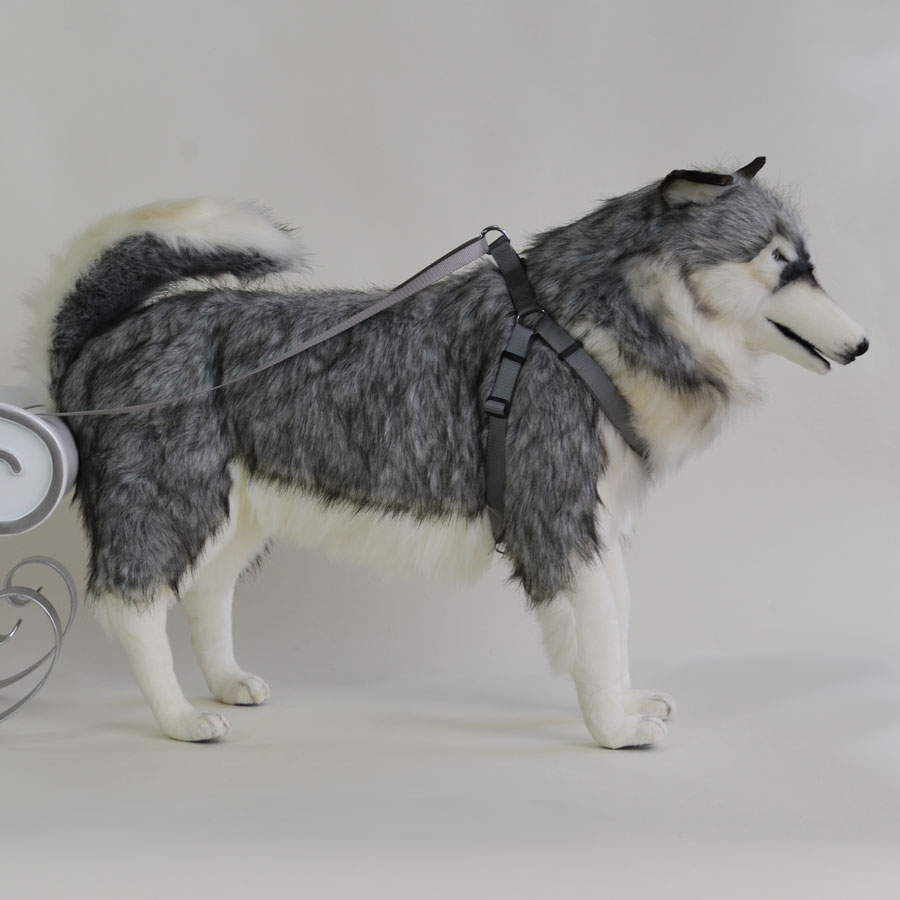 The Gray Husky is anatomically scaled to create the best reporduction of the life size stuffed dog and most realistic plush animal in the industry. The "coat" of the Dog is meticulously cut by hand, and manufactured in small lots to Hansa's exacting specifications. Gentle feet, soulful eyes and face are lovingly detailed to give the Siberian Husky the life-like look that is unmistakably Hansa. The Dog is exceptionally strong, yet lightweight, with a structural metal frame and can even be "ridden" by anyone up to 150 lbs. The recommended age for Hansa animals is 3 and up to comply with ASTM93 safety standards. Note that each Dog is hand made so each one may vary slightly in its final look.