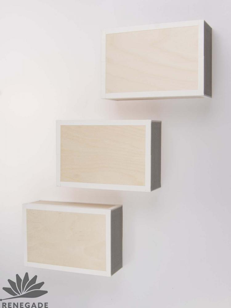 These cigar boxes are perfectly square and are made with thicker end dove tail glued plywood and have an internal reinforced center panel. This box modle has white or black cloth tape trim with felt ends and wood is not finished it is raw. For this model of box it is best to carefully paint the face of the box with clear coat polyurethane. Other wise it quickly gets dirty from your hands