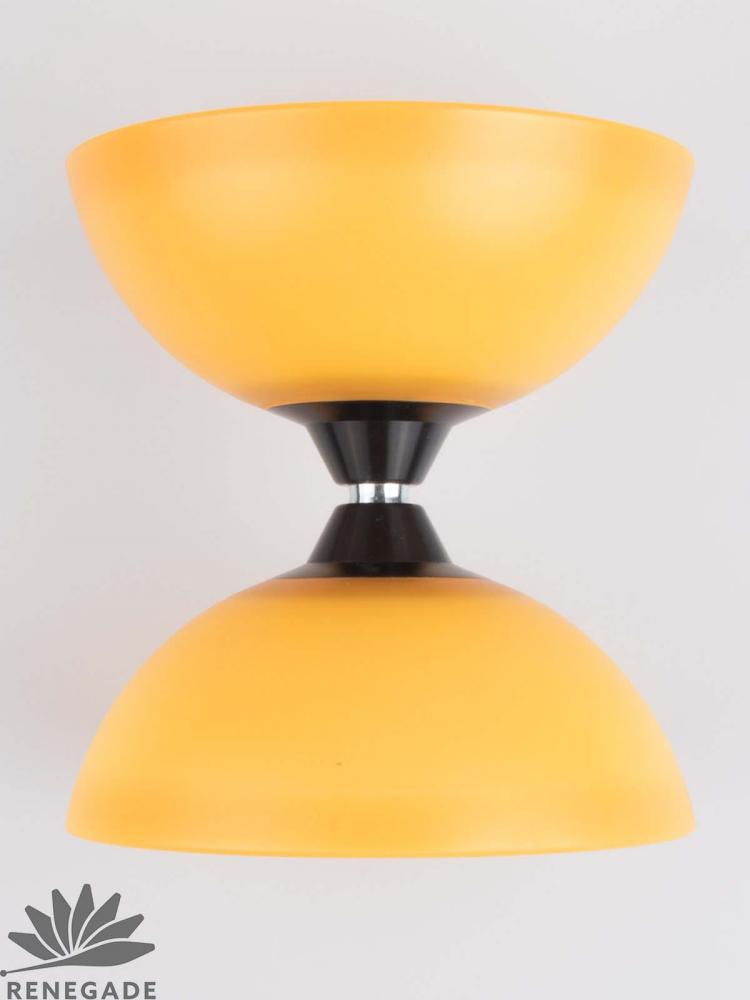 The Vision is a new lightweight diabolo featuring a line of mostly translucent colors (exceptions are black and white which are opaque color). This full size diabolo has slightly stiffer cups and spins perfectly true, no wobbles. It is a good choice for kids learning to play diabolo as it is light enough for them to practice long hours without getting arm fatigue.