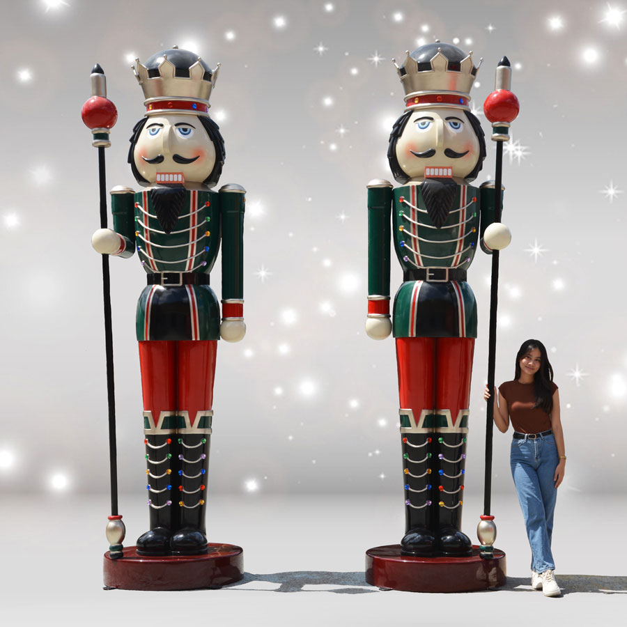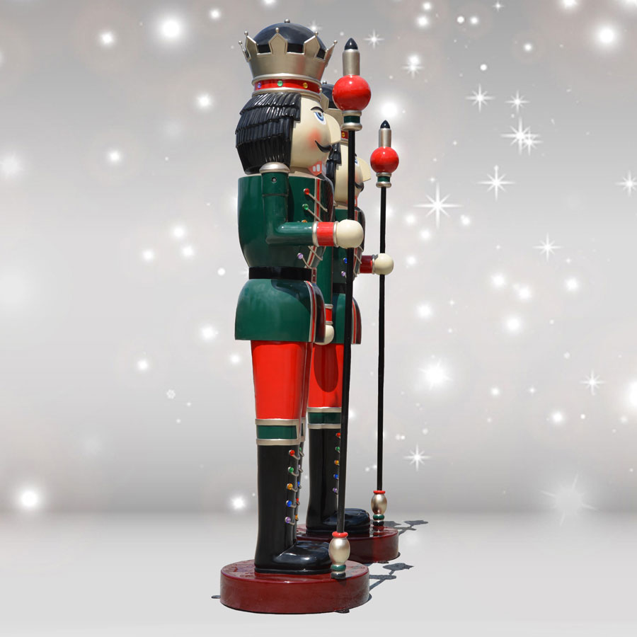 Take your holiday display over the top with these giant nutcrackers. Made by Heinimex and designed by Christmas Night Inc. for the Christmas Night Nutcracker Collection, this pair of 12-foot tall nutcrackers commands attention from afar. Despite their towering size, the pair does not fall short on detail, as each oversized nutcracker features exquisite painted finishes and special gold accents. You can also buy each nutcracker king separately, if desired (see items 37002 and 37003), from Christmas Night Inc. These larger-than-life nutcracker figures are made of durable, chip-resistant fiberglass that's suitable for indoor and outdoor use.