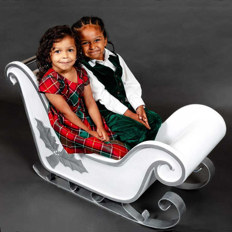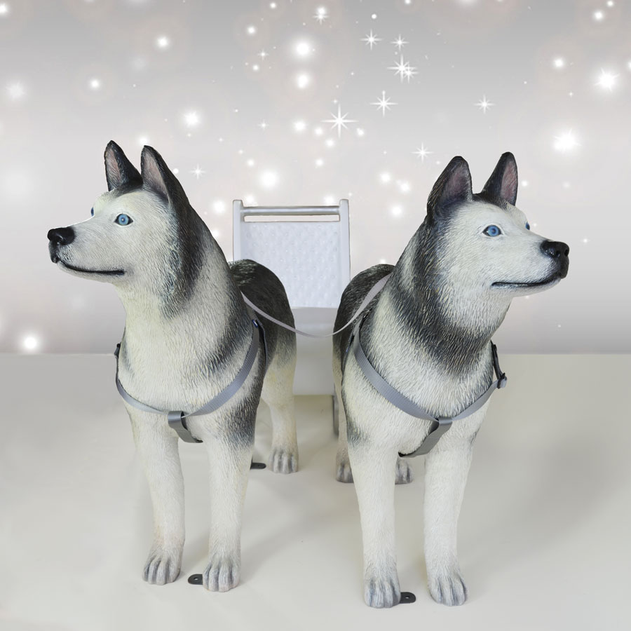 Working Husky Dogs with Sled. The Husky dogs have a gentle, intelligent temperament. These dogs and sled feature hand-painted details that will add a touch of fun for children and adults alike. And because these statues are made from fiberglass they are durable enough for outdoor use yet still very lightweight. One child or two small children can sit in the Sled. Great for photo opportunities.