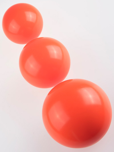 Large-sized Russian balls are made for single ball manipulation or for stacking balance tricks. Usually a Russian ball over 100mm is too large for toss juggling. Renegade is the only company that make oversized Russian balls. They are made with a thick vinyl shell and filled with micro glass beads. They can be custom ordered depending on what you want to use them for.