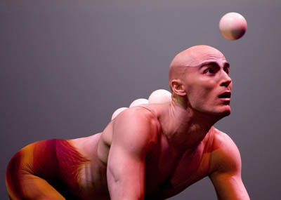 The Russian ball got its name from Russian jugglers who made this style of ball popular. The most influential teacher using Russian balls was Yuri Pozdnyakov (Kiev National Circus School) and they were first sold by Vladik Miagkostupov starting around 1995. Victor Key used Russian balls in the Cirque du Soleil production Dralion in 1999. The other Russian juggler who made a big impact on the popularity of Russian balls was Alexander Koblikov (Ukraine).