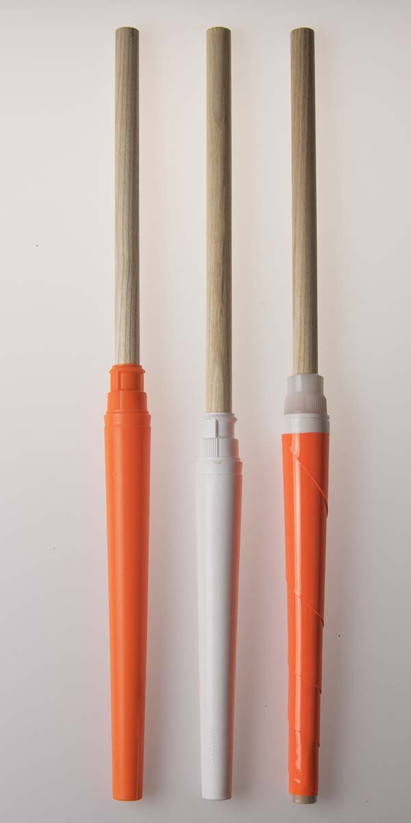 All of these models of club are based on a wood dowel, made of Ash, 5/8” in diameter. This wood dowel has a stiff feel, without any flex or libration.