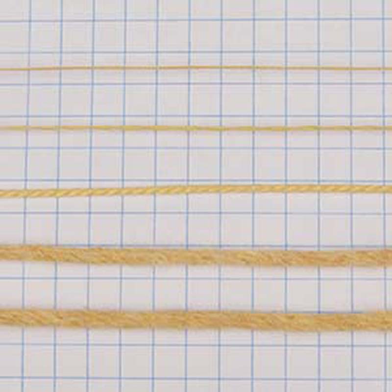 - The thread used to make the tape varies. There are many types of thread used to make kevlar wick. In the photo below is shown four types of thread that are typical for making wick. The top is fine pure Kevlar twisted pair, the second down thicker pure kevlar tiwsted pair, then spun pure Kevlar and bottom fiber core spun Kevlar. The kind of thread effects the density of the wick, abrasion resistance and how much fuel the wick will hold.