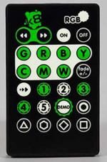 The new remote control system works at up to about 2 feet away. You can change the color or strobe effects by pushing the individual color buttons on the remote. The remotes siginal is not strong enough to change the stick colors from off stage.