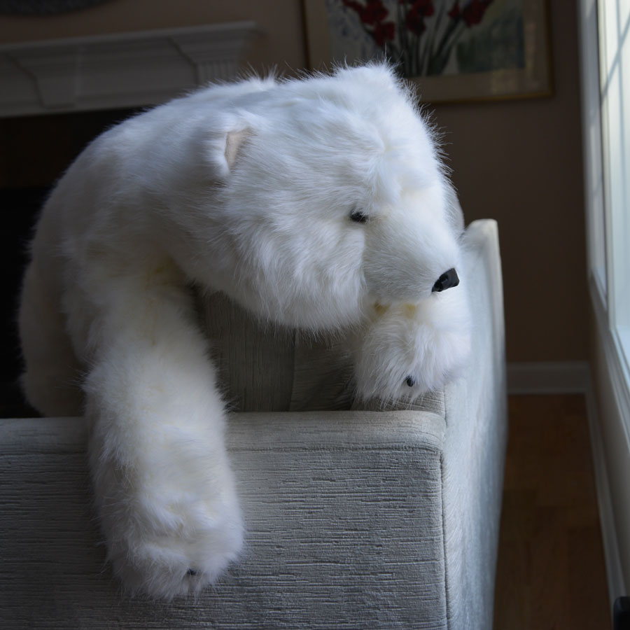 The White Diamond Polar Bear hugs line is known for its luxurious white fur with an incredibly soft feel. This Polar Bear has double the fibers per square inch, giving it a luxurious plush feel. The extra length fibers offer a more realistic look and feel, that you just want to wrap up in your arms. This Polar Bear has weighted feet which makes holding him feel like you are getting a real hug! And since each Polar Bear is handmade, you will receive a unique new friend every time you order.