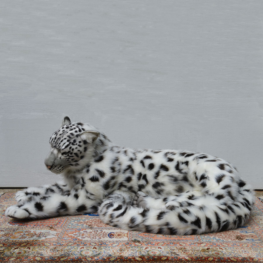 Magnificent plush Snow Leopard. The "coat" of the Snow Leopard is meticulously cut by hand, and manufactured in small lots to Hansa's exacting specifications. Gentle feet, soulful eyes and face are lovingly detailed to give the Snow Leopard the life-like look that is unmistakably Hansa. Note that each Snow Leopard is hand made so each one may vary slightly in its final look.