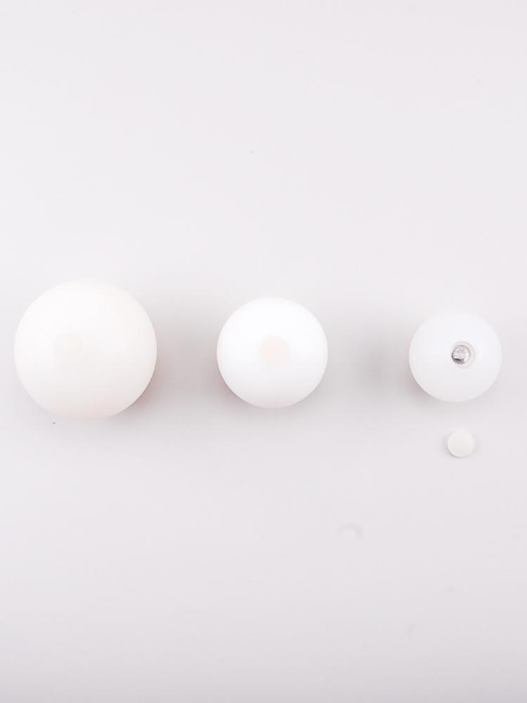 The hard shell LED contact juggling balls come in three sizes: 63 mm, 70 mm and 76 mm diameter. The hard shell ball is hollow. The surface and feel is more like an acrylic ball, and it has a similar weight. The hollow ball is a bit light for some contact work, like body rolls, so in those cases the filled soft shell ball is a better choice.