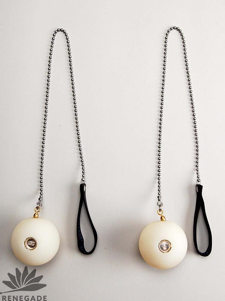 This soft and durable poi is a wonderful new product to enhance your evening poi experience. LEDs are mounted in a hollow, 70mm ball with an attachment swivel. The ball chain offers the advantage of being fully adjustable in length, and allowing it to swivel very well and so it tangles less. The on/off switch works by just turning it. Changing batteries is very easy, unscrew the on/off switch and drop the batteries inside. The batteries last about 4-5 hours.