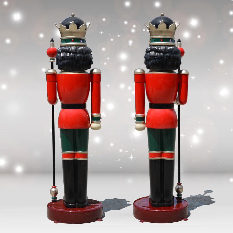 This pair of enchanting life-sized nutcracker figures was designed by Christmas Night Inc. as part of our popular Christmas Night Nutcracker Collection. Featuring eye-catching glossy paint with exceptional attention to detail on every element of the figures, these life-sized Christmas nutcrackers are specially designed to steal the show at your residential or commercial holiday presentation. The set contains two figures that have been made in the Philippines by Heinimex using durable, chip-resistant fiberglass for indoor/outdoor use.