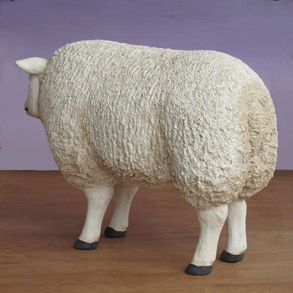 The Life Size Standing Sheep is made of high-quality fiberglass and is hand painted for a lifelike appearance. The sheep stands 29 inches tall and is made to have a realistic appearance. The textured surface looks like real wool and the carefully painted finish breathes life into the design. The durable statue will maintain its beauty for years to come.