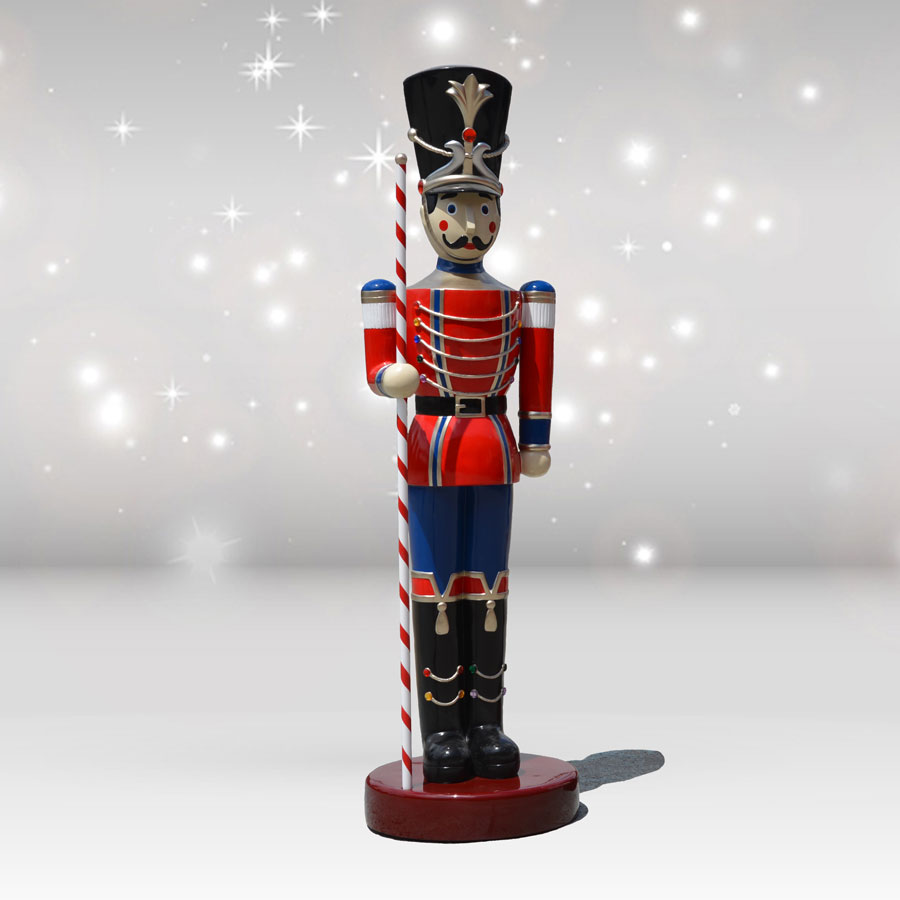 Forward, march! This colorful pair of 6.5-foot toy soldiers are the ideal duo for welcoming people to your home or business. They are made of durable fiberglass that is fade-resistant, withstanding brutal cold, snow and heat. Each soldier wields a candy cane striped baton as they stand at attention. Set them at the foot of the driveway, at the entrance or by an archway as the main decoration. Everyone who enters will feel the cheer this life-size toy solider pair brings.