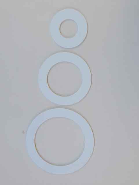 Nano rings! These new (2013) juggling rings are made for a yet to be known purpose. They comes in three sizes: 6, 9, and 12 inch diameters. The Nano is made of 3/16 inch thick white plastic with a flat edge.