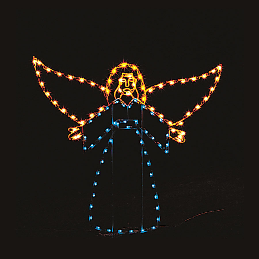 Add an awe-inspiring finishing touch to your LED Christmas display with this enchanting 6-foot tall LED angel from the Holiday Dreams Nativity Display. The light-up angel is made with 112 commercial-grade C7 LED lights and is hand-built in the U.S. for exceptional quality. You may install her into the ground (no extra equipment needed) or on a solid, flat surface using a single set of floor stands from Christmas Night Inc.