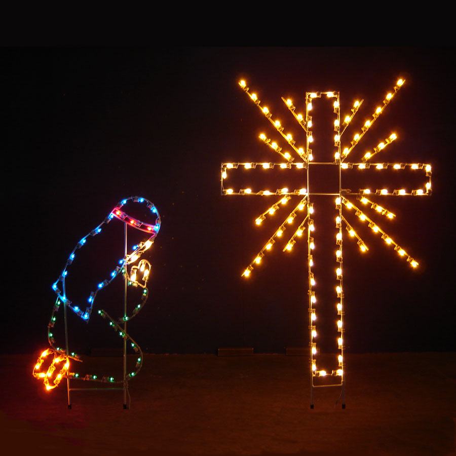 Add an awe-inspiring finishing touch to your LED Christmas display with this enchanting 4-foot tall LED shepherd boy and 6 ft cross from Holiday dreams. The light-up set is made with 149 commercial-grade C7 LED lights and is hand-built in the U.S. for exceptional quality. You may install the shepherd and cross into the ground (no extra equipment needed) or on a solid, flat surface using two single sets of floor stands from Christmas Night Inc.