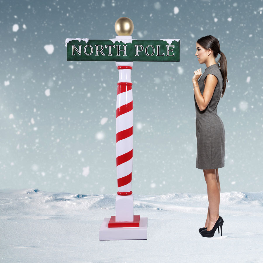 This Giant North Pole Sign is the perfect decoration for your North Pole Display. Featuring incredibly vivid red and white paint over a durable, chip-resistant fiberglass base, this North Pole sign is a must to feature in your Christmas displays at your home or business. This North Pole sign stands on a sturdy base with security plates.
