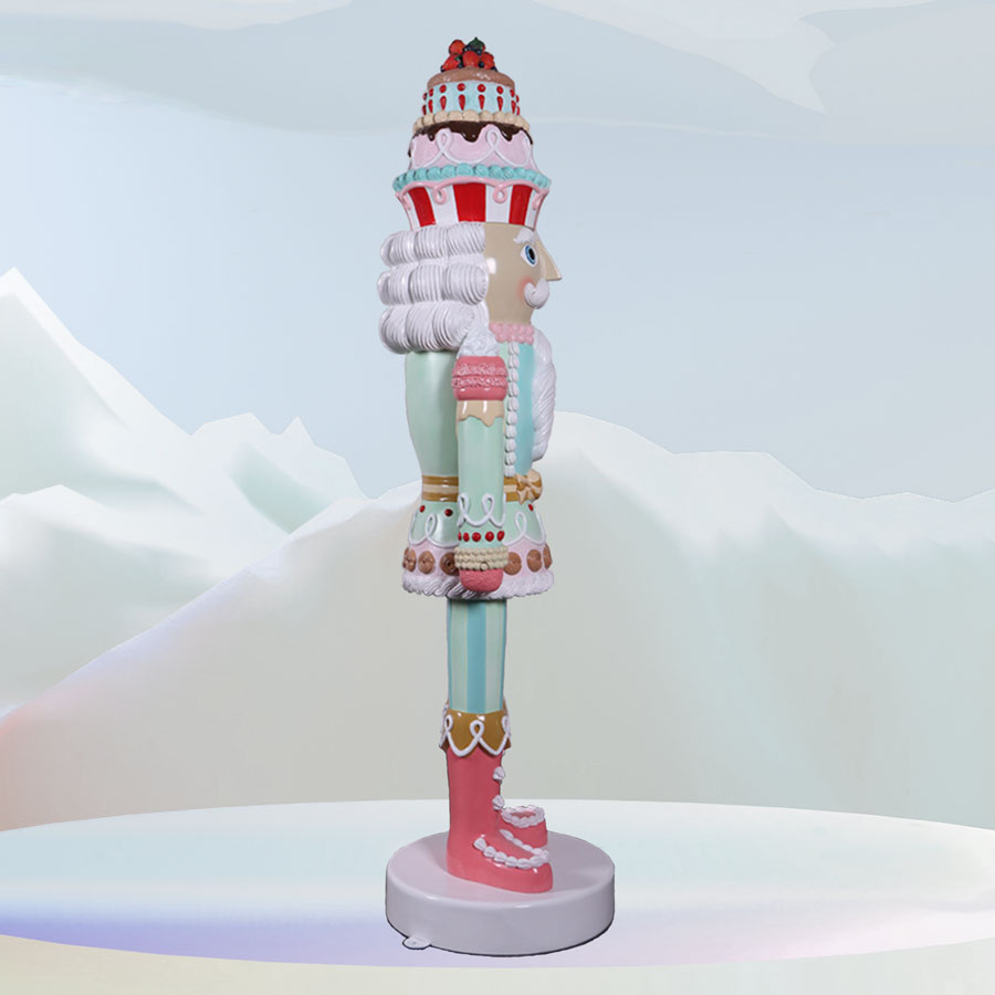 Our sweet Nutcracker Candy Cake stands at 6 feet high and is detailed in candy colors that make this decoration pop. See the delight in children's eyes as they enter your exquisitely decorated winter wonderland - bring back the magic that makes them believe that just about anything possible during the Christmas season! This premium decoration is made from chip-resistant, durable fiberglass and is guaranteed to provide wonder and delight for many, many years.