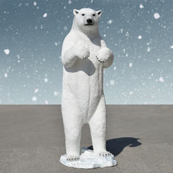 Add to your whimsical winter wonderland with a Polar Bear dressed in Santa hat and scarf. Heinimex's life-sized Christmas polar bear (83 in.) features rich detail and character from its charming facial expression to its textured fur. This outdoor polar bear figure is a popular choice among homeowners, businesses and zoos and is crafted from durable, chip-resistant fiberglass material and then finished with a topcoat to help it withstand the elements.