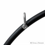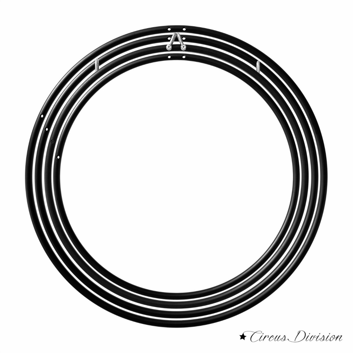 The Play Aerial Hoop is high quality, made with seamless tempered steel tubing powder coated in black. All connectors both single and double are made of stainless steel. The hoop has a weight rating of 250lbs.