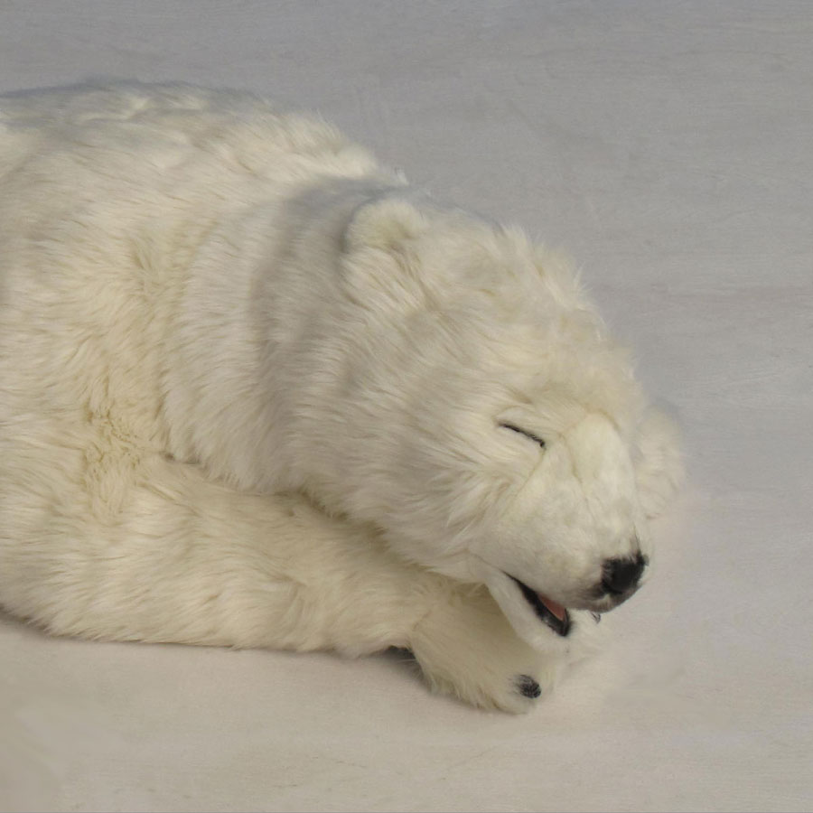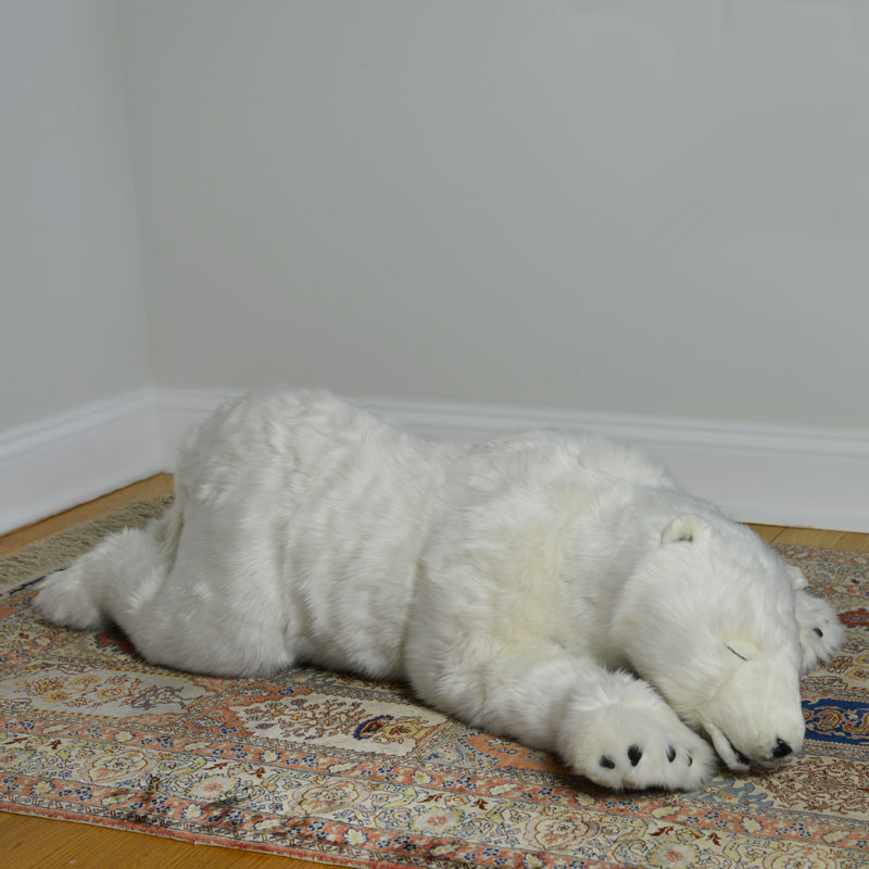Despite his dozing disposition, this Hansa sleeping polar bear cub makes an exciting splash amidst any indoor winter display. From Hansa's popular Portraits in Nature collection, this sweet plush baby polar bear has been handmade using meticulously hand-cut fabric and is made in small batches to rigorous specifications. This means that your bear will have subtle variations that make it all your own.