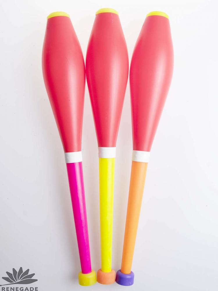 Renegade Juggling is making a special offer on Px3 Quantum clubs for teaching. We have a small inventory of old club parts/colors/styles that we use to make teching px3 clubs with. The clubs are only offered in a limited color selection of our choice. Clubs are not as show in photo., They can be odd color combinatiions, as we have limited color selections of outdated parts.
