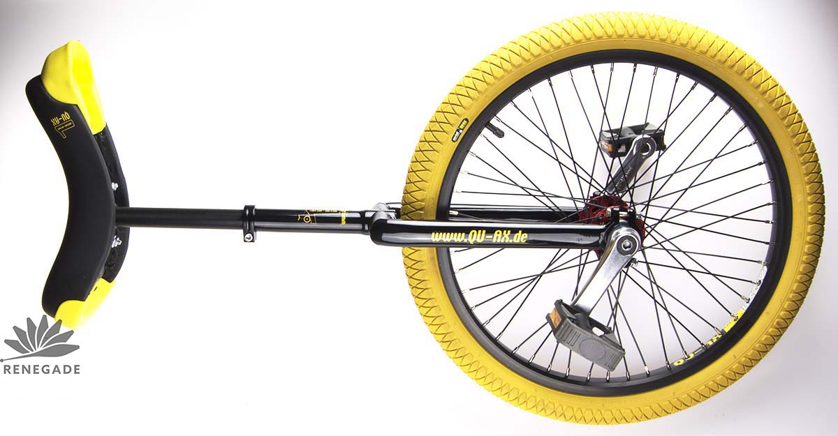 QU-AX is one of the leading bands of unicycles designed in Germany and made in Taiwan. Renegade now offers their full line of unicycles. The beginner level LUXUS, is very nice medium quality starter to learn unicycle with. it is durable and well made for the money.