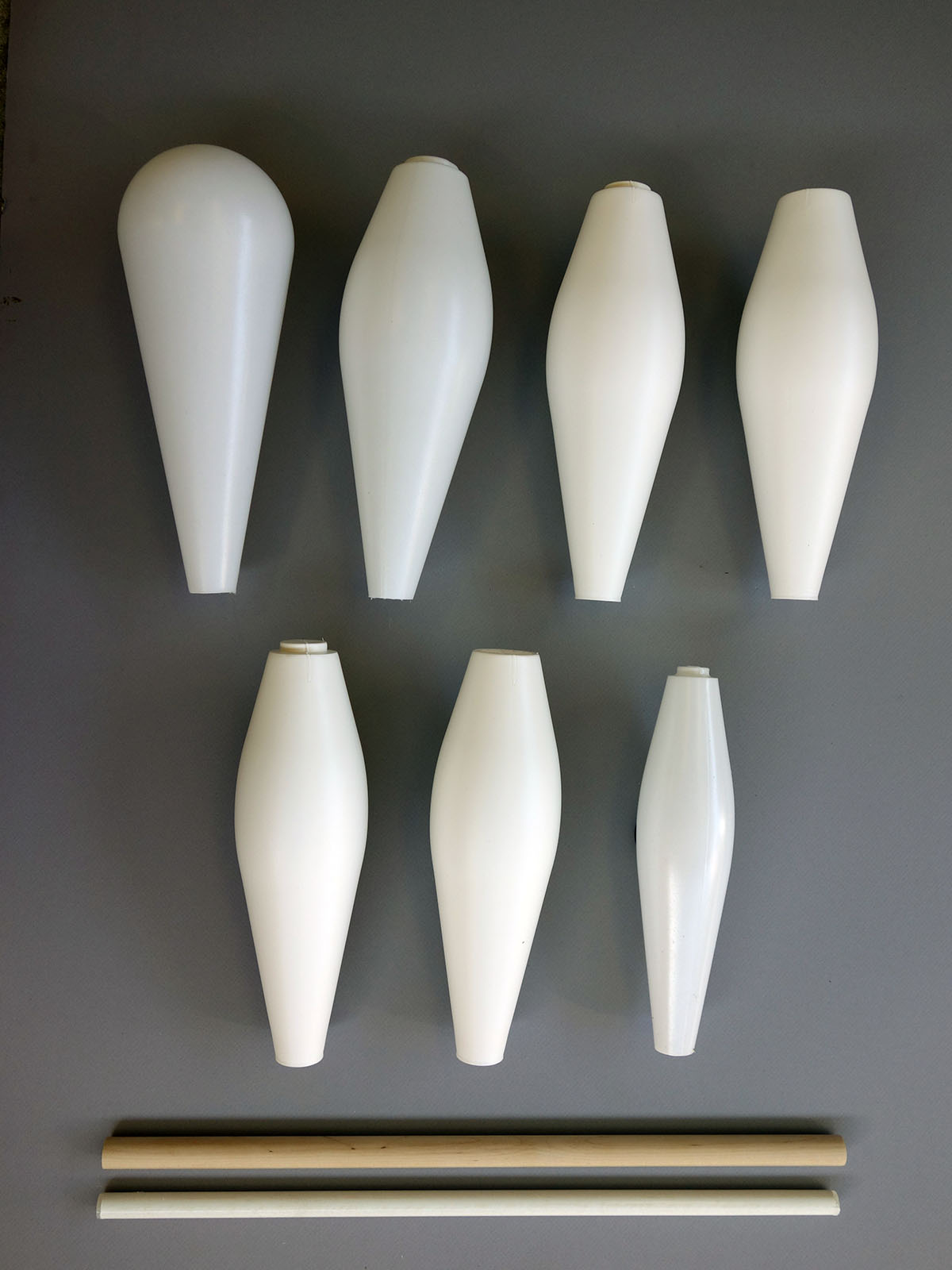 To order the correct parts, the first thing to figure out is whether you have 75mm, 85mm, 95mm or 105mm juggling clubs. The difference between these clubs is the width of their bodies. The best way to measure the width is to place the edge of the club body against a wall, then place a ruler against the wall on top of the club and look straight down at the ruler so you can see the outside edge of the club. Conversions for the width are: 75mm = 2 3/4 inch; 85mm = 3 3/8 inch; 95mm = 3 3/4 inch; and 105mm = 4.0 inch. Note the millimeter width from the club’s name is not the actual width of the body.