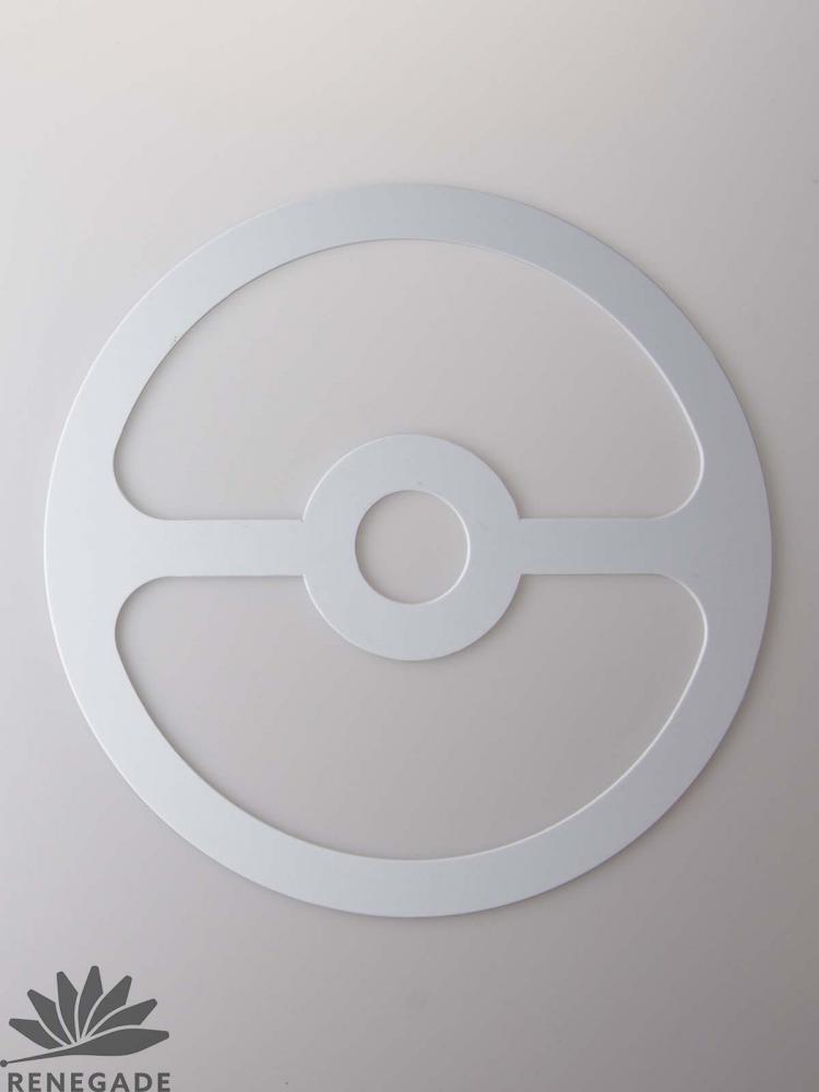 This version of the d-ring has a center circle for ball and club combination tricks. It is similar in size to the standard ring, with a 33 cm (13 inch) diameter. The center bar and circle in the ring has potential for nice new tricks or manipulations. The perfect stiffness and light weight (104 grams) make the rings juggle very well. The ring is made of 1/8 inch thick white plastic, and the edge is flat and beveled.