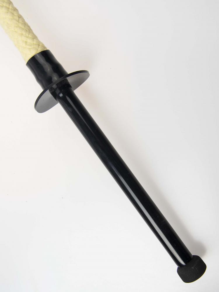The Reneagde Fire Dance Sword makes a big impessive flame. The weight point is very nice, so it is good for throwing and swinging. The silicone sword guard protects your hands. The handle and guard is made of 100% silicone which is fire and fuel resistant.. The weight of the sword is 390g.
