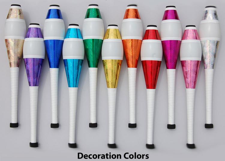 This Renegade 95mm+ designed in 2017 is a vibrantly decorated club well suited for club passing. The 95mm body is larger and more visible than other commonly sized clubs like Play Px4 and Henrys Delphine. This larger body size is a nice option for taller and larger people, and for jugglers looking for a showy club. The fiberglass dowel has a slightly stiffer feel then wood or plastic. It is more durable than wood, and will not absorb water in humid conditions like a wood dowel might. This club is a decorated version of the Renegade 95mm+ fiberglass dowel club and is available with our wide selection of body colors and decorations.