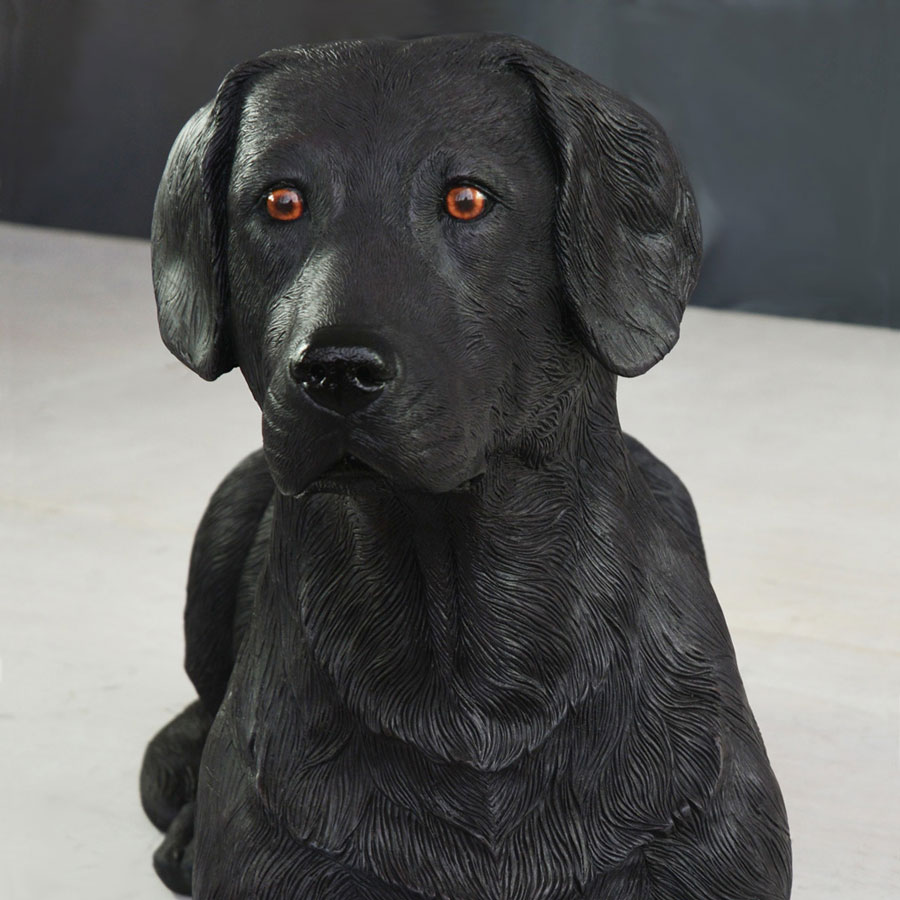 You'll feel like you have a protective guardian at your side when you get this handsome Black Labrador statue. It stands 22.25" tall in a lying down position, just like a true Black Lab. The subtle variations in the beautiful black coat are evident thanks to careful detailing which has been painted by hand. This dog statue's fiberglass construction makes it particularly durable yet surprisingly lightweight.
