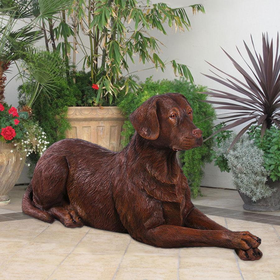 This Chocolate Labrador statue is just as adorable and charming as the actual breed. It features beautiful, hand-painted details that make it look incredibly life-like. It's even proportionately sized at 22.25" tall lying down. Best of all, this Chocolate Labrador's fiberglass construction makes it an ideal choice for indoor or outdoor use, such as on your patio, perched on the front porch or out in the garden.