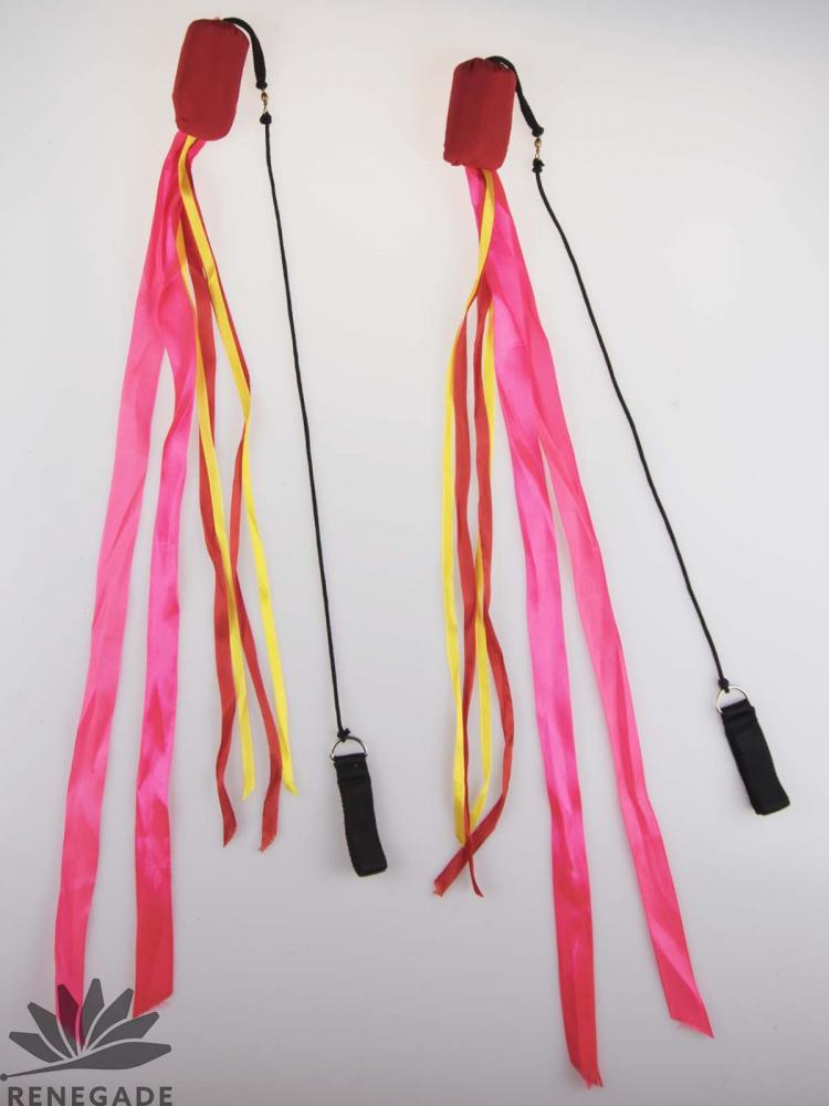 Play ribbon poi is made for both beginners and circus school teachers. The ribbons are 24 inches long (nylon)/ The bag is filled with millet. The Poi handles length is adjustable. This is good starting props for children as the ribbon poi can be used to makeover simple good looking routines.