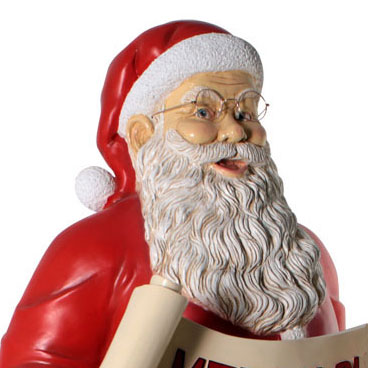 You don't need to say "Merry Christmas" when Santa Claus is there to do it for you! The Heinimex Near-Life-Size Santa with Banner is a cheerful addition to smaller retail displays and outdoor merriment. Mr. Claus has a big smile that radiates from his bushy beard, and the sign he carries with "Merry Christmas" written in red is the perfect message for joyous guests or shoppers. Like all Heinimex Christmas Collection outdoor statues, it's made of long-lasting fiberglass with a protective topcoat.