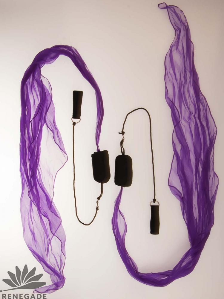 Scarves poi is made for both beginners and circus school teachers. The scarves are are 3.5 feet long long. This long tail makes for a nice big pattern with simple poi swinging moves. The bag is filled with millet. The Poi handles length is adjustable. This is good starting props for children as the ribbon poi can be used to makeover simple good looking routines.